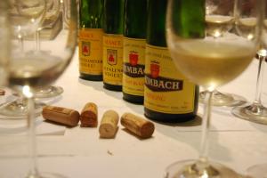 Debido a que Gabriel no preparó nada. Hoy, yo dirijo la Cata, aproveché la ocasión para descorchar seis blanquitos de primera calidad. El calor y los ánimos lo piden, así que busqué lo más interesante de los anaqueles de Palacio de Hierro y La Europea. La búsqueda no fue completamente al azar, Alsacia estaba en mi mente. Alsacia brilla como otras regiones francesas, siendo los blancos sus mejores exponentes. Trimbach y Hugel, garantizan satisfacciones y buenos momentos al degustar sus vinos, desde los básicos hasta sus cuveés más prestigiados…Así que empezamos con un Hugel Gewurztraminer 2007, para mí fue simplemente el mejor de la noche: fresco, aromático, espeso y contundente, una obra de arte, limpio, directo, muchas rosas, cítricos, guayaba y al final un deje a agua quina para rematar su salida. Compraré algunas botellitas para después. El Hugel Riesling 2006, tiene el característico aroma de la riesling en su juventud, mucho queroseno, con alguna fruta amarilla que no acaba de salir, en boca es mineral y abocado, excelente acidez y largo. El siguiente fue un Trimbach que nunca abrió, se trata del Pinot Blanc 2005. Bastante cerrado, con algunas notas lejanas a flores, en boca es rústico y con insinuaciones de flores secas y notas de pera. Habrá que darle otra oportunidad a este 2005. El Trimbach Riesling 2006, resultó más cerrado que el Hugel, con aromas a queroseno menos pronunciado y con una boca más mineral. Un cambio de 360 grados a Sancerre hizo evidente el carácter de los vinos en las dos regiones, marcando aún más la diferencia la uva savignon blanc en versión seco. Además de que existen otros productores cuyos vinos resultan más interesantes. Se trata de Pascal Jolivet 2007, evidentemente herbáceo y sin muchas concesiones, aromas a heno recien cortado y algunas notas calizas. Por último cerramos con un vino de Franconia, del sur de Alemania, rompiendo con ciertos parámetros empezando por la forma de la botella. Franconia Bacchus 2008, «esto es puro jugo de guanábana» alguien lo dijo, y todos estuvimos de acuerdo. Guanábana con sandía en sus expresiones más limpias, con un ligero toque amargo al final, un vino 100% f-r-u-t-a-l y fresco, para los peores días de calor.